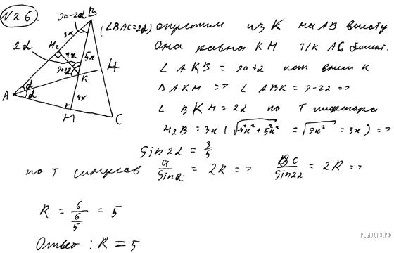 По теореме синусов радиус описанной около треугольника ABC окружности