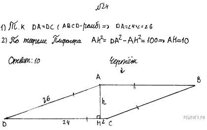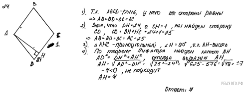 Высота AH ромба ABCD делит его сторону CD на отрезки и