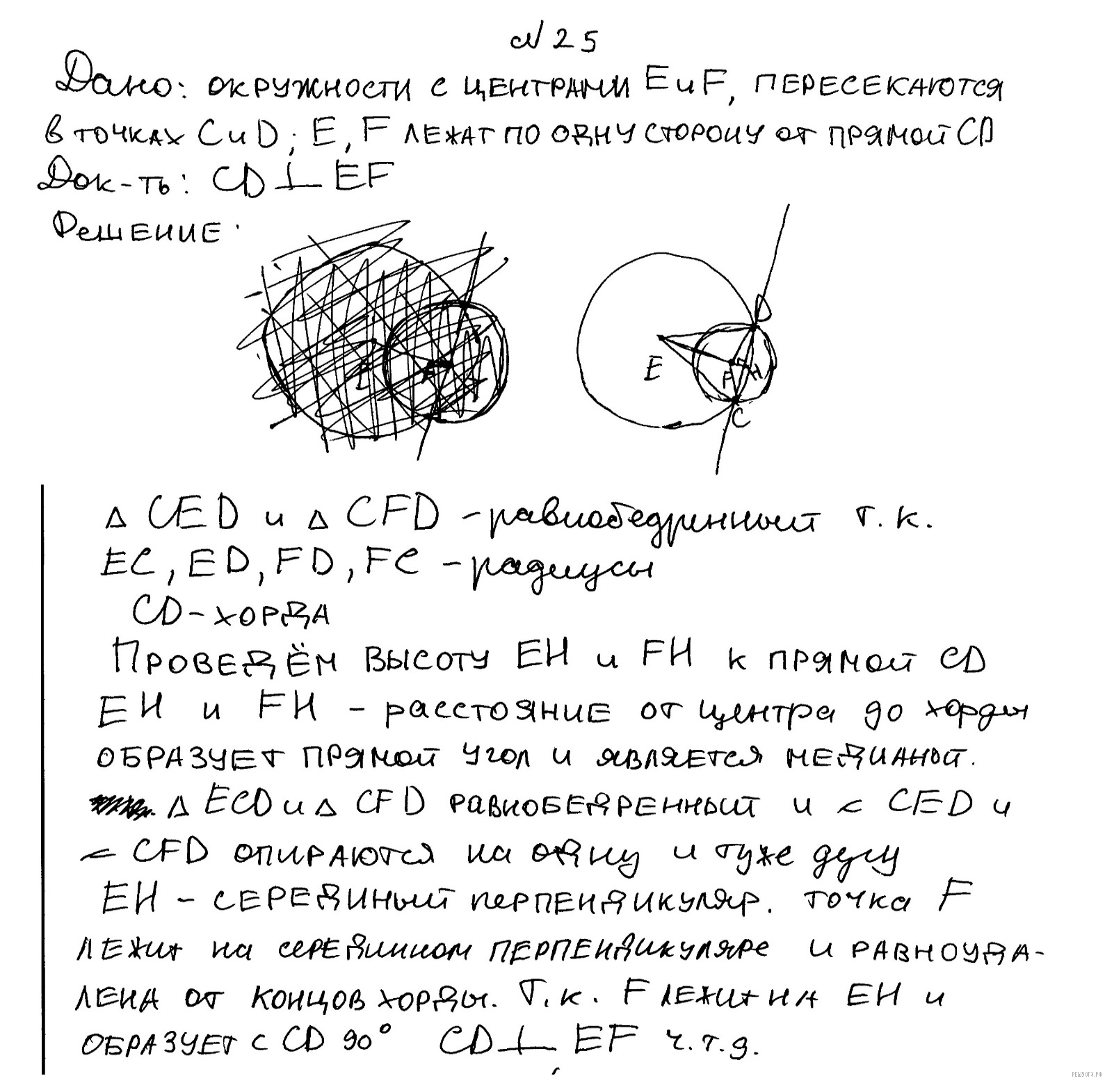 Две окружности с центрами E и F пересекаются в точках C и D, центры E и F лежат по одну сторону относительно прямой CD. Докажите, что прямая CD перпендикулярна прямой EF.