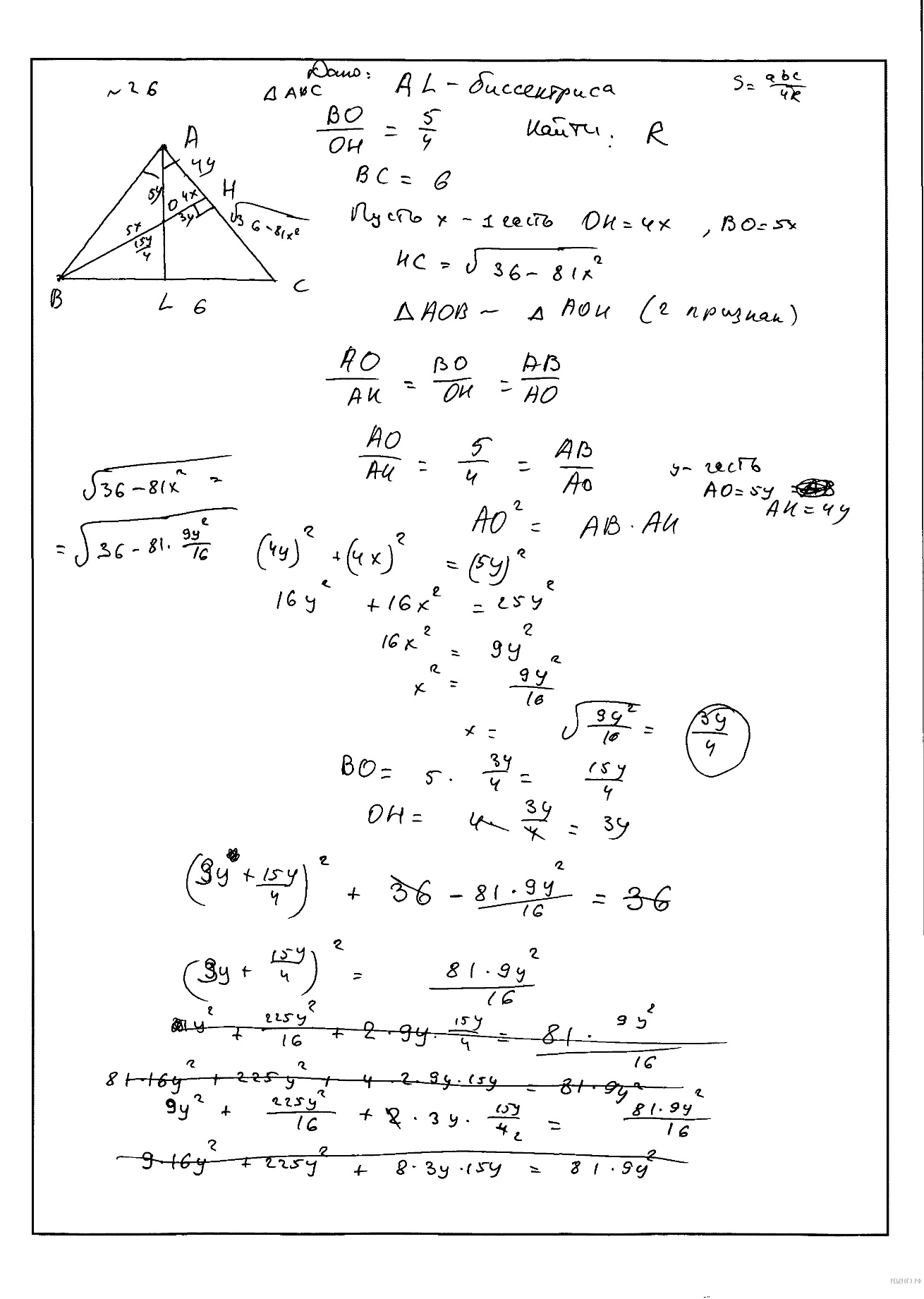 В треугольнике ABC биссектриса угла A делит высоту, проведенную из вершины B, в отношении 5 : 4, считая от точки B. Найдите радиус окружности, описанной около треугольника ABC, если