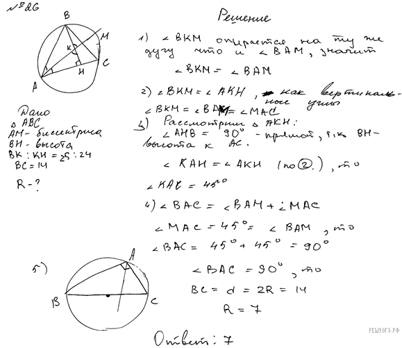 | Ход решения верный, чертёж соответствует условию задачи, но пропущены существенные объяснения или допущена вычислительная ошибка | 1 |