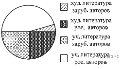 Определим по диаграмме, какую долю книг в школьной библиотеке составляет учебная литература. Эта доля будет равна доле площади круга, которая соответствует учебной литературе. Учебная литература иностранных авторов составляет книг, учебная литература российских авторов составляет чуть меньше половины книг. Таким образом, суммарная доля учебной литературы будет чуть меньше