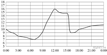 Версия для печати и копирования в MS WordНа рисунке показано, как изменялась температура воздуха на протяжении одних суток. По горизонтали указано время суток, по вертикали — значение температуры в градусах Цельсия. Найдите наибольшее значение температуры. Ответ дайте в градусах Цельсия.