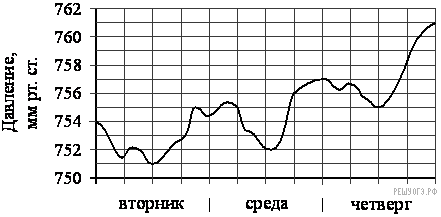 Из графика видно, что минимальное значение давления в четверг равно 755 мм рт. ст.