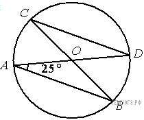 В окружности с центром в точке О проведены диаметры AD и BC, угол OAB равен 25°. Найдите величину угла OCD.