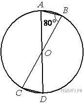 В окружности с центром в точке О проведены диаметры AD и BC, угол ABO равен 80°. Найдите величину угла ODC .
