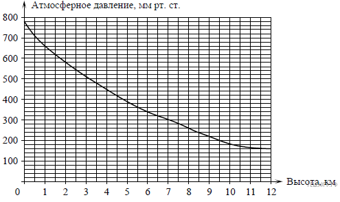 Версия для печати и копирования в MS WordНа графике изображена зависимость атмосферного давления (в миллиметрах ртутного столба) от высоты над уровнем моря (в километрах). Определите по графику, на какой высоте атмосферное давление равно 260 мм рт. ст. Ответ дайте в километрах.