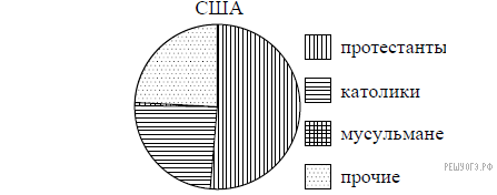 Версия для печати и копирования в MS WordНа диаграмме показан религиозный состав населения США. Определите по диаграмме, какая из религиозных групп является самой малочисленной.
