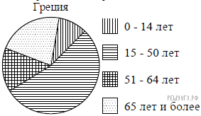 Версия для печати и копирования в MS WordНа диаграмме показан возрастной состав населения Греции. Определите по диаграмме, какая из возрастных категорий самая малочисленная.
