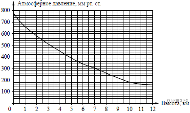 Версия для печати и копирования в MS WordНа графике изображена зависимость атмосферного давления (в миллиметрах ртутного столба) от высоты над уровнем моря (в километрах). Определите по графику, на какой высоте атмосферное давление равно 300 мм рт. ст. Ответ дайте в километрах.