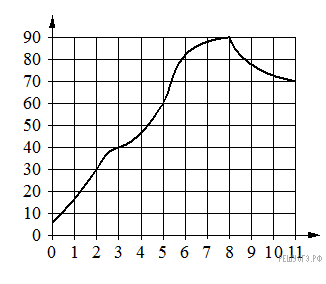 Версия для печати и копирования в MS WordНа графике показано изменение температуры в процессе разогрева двигателя легкового автомобиля. На горизонтальной оси отмечено время в минутах, прошедшее с момента запуска двигателя, на вертикальной оси — температура двигателя в градусах Цельсия. Определите по графику, на сколько градусов Цельсия нагреется двигатель со 2-й по 3-ю минуту с момента запуска.