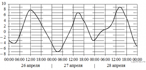 Версия для печати и копирования в MS WordНа графике показано изменение температуры воздуха на протяжении трех суток. По горизонтали указывается дата и время, по вертикали — значение температуры в градусах Цельсия. Определите по графику наименьшую температуру воздуха 27 апреля. Ответ дайте в градусах Цельсия.