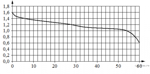 Из графика видно, что напряжение упадет с 1,4 В до 0,6 В за 54 часа.