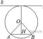 Версия для печати и копирования в MS Word Радиус окружности с центром в точке O равен 87, длина хорды AB равна 126 (см. рис.). Найдите расстояние от хорды AB до параллельной ей касательной k.