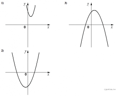 На рисунке изображены графики функций вида y = ax2 + bx + c. Установите соответствие между графиками функций и знаками коэффициентов a и c.