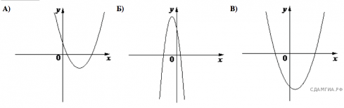 На рисунке изображены графики функций вида y = ax2 + bx + c. Установите соответствие между графиками функций и знаками коэффициентов a и c.