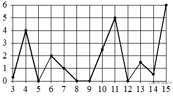 На рисунке жирными точками показано суточное количество осадков, выпадавших в Казани с 3 по 15 февраля 1909 года. По горизонтали указываются числа месяца, по вертикали — количество осадков, выпавших в соответствующий день, в миллиметрах. Для наглядности жирные точки на рисунке соединены линией. Определите по рисунку, какого числа из данного периода в Казани выпало наибольшее количество осадков.