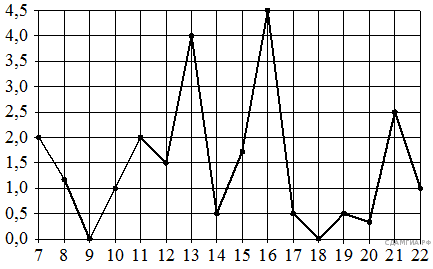 На рисунке жирными точками показано суточное количество осадков, выпадавших в Мурманске с 7 по 22 ноября 1995 года. По горизонтали указываются числа месяца, по вертикали — количество осадков, выпавших в соответствующий день, в миллиметрах. Для наглядности жирные точки на рисунке соединены линией. Определите по рисунку, какое наибольшее суточное количество осадков выпадало в Мурманске в данный период. Ответ дайте в миллиметрах.