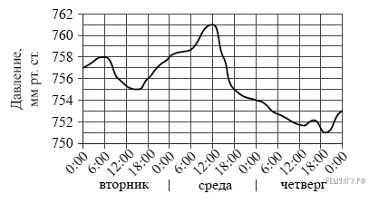 На рисунке изображен график изменения атмосферного давления в городе Энске за три дня. По горизонтали указаны дни недели и время, по вертикали — значения атмосферного давления в миллиметрах ртутного столба. Укажите значение атмосферного давления во вторник в 6 часов утра.