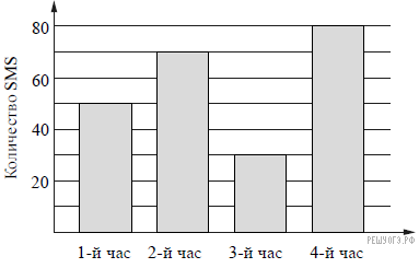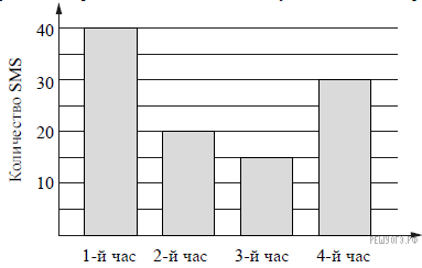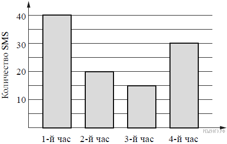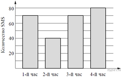 На диаграмме показано количество SMS, присланных слушателями за каждый час четырехчасового эфира программы по заявкам на радио. Определите, на сколько больше сообщений было прислано за первые два часа программы по сравнению с последними двумя часами этой программы.