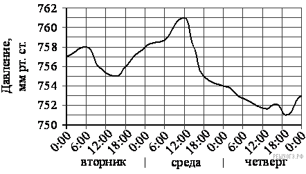 На рисунке изображен график изменения атмосферного давления в городе Энске за три дня. По горизонтали указаны дни недели и время, по вертикали значения атмосферного давления в миллиметрах ртутного столба. Укажите значение атмосферного давления (в мм рт. ст.) в среду в 18 часов вечера.