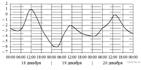 На графике показано изменение температуры воздуха на протяжении трех суток. По горизонтали указывается дата и время, по вертикали — значение температуры в градусах Цельсия. Определите по графику наименьшую температуру воздуха 19 декабря. Ответ дайте в градусах Цельсия.