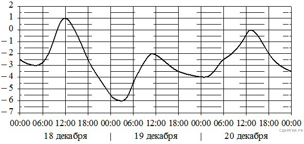 На графике показано изменение температуры воздуха на протяжении трех суток. По горизонтали указывается дата и время, по вертикали значение температуры в градусах Цельсия. Определите по графику наименьшую температуру воздуха 18 декабря. Ответ дайте в градусах Цельсия.
