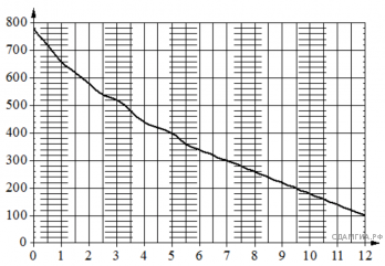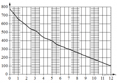 На графике изображена зависимость атмосферного давления от высоты над уровнем моря. На горизонтальной оси отмечена высота над уровнем моря в километрах, на вертикальной — давление в миллиметрах ртутного столба. Определите по графику, чему равно атмосферное давление на высоте 12 км над уровнем моря. Ответ дайте в миллиметрах ртутного столба.